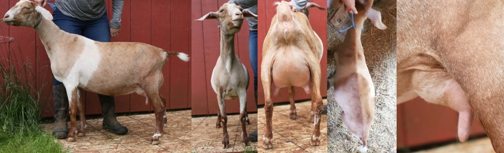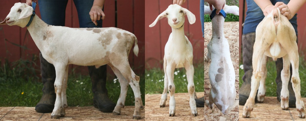 We were so sad to lose Ruler’s daddy February 2023. But we did get a few beautiful kids sired by him, and one that stood out right away was Ruler. Ruler is long, angular, wide, beautiful level rumped, solid feet… there’s just not much not to like about this beautiful boy. He’s also gold with moonspots!