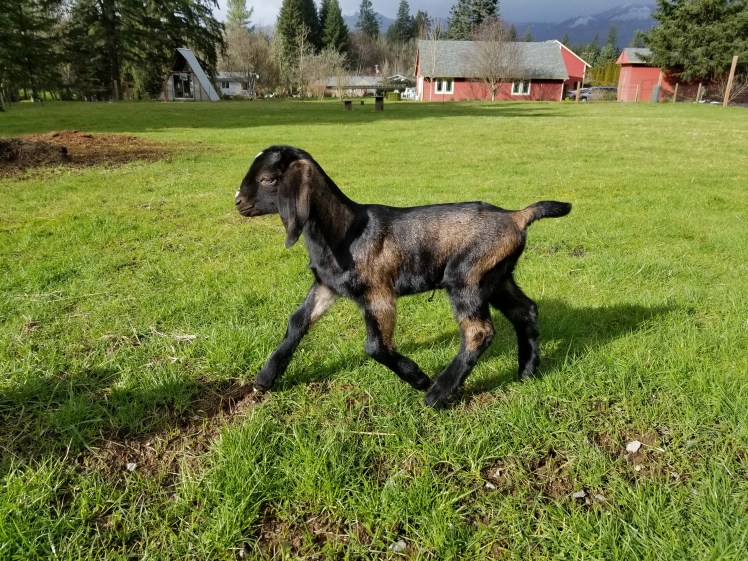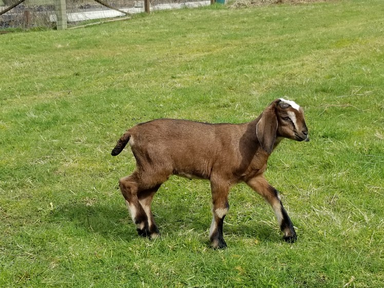 Bezoar, blazed face, speckled ears, white on sides and legs, moonspots.