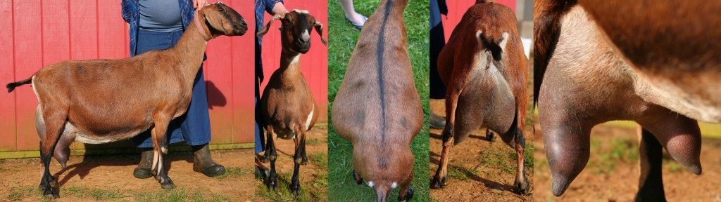We Decided to Officially Retire Bebe from Showing End of the 2017 Show Season as she was just starting to show her age, particularly in the udder department. She is still working happily on our farm as a Brood-Doe, raising kids for us each summer.